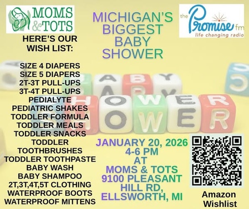 Stop by with your baby shower items, enjoy a snack, and visit with our staff and our great friends from The Promise FM. If you want to help from afar, we also have an Amazon Wishlist that you can use!!