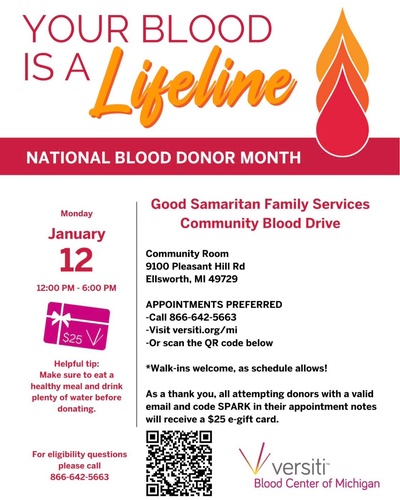 Our first Good Samaritan Family Services Blood Drive of 2026 is just around the corner on Monday!