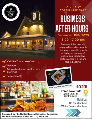 Join us for Business After Hours at Torch Lake Café on Wednesday, December 10th from 5–7 pm!