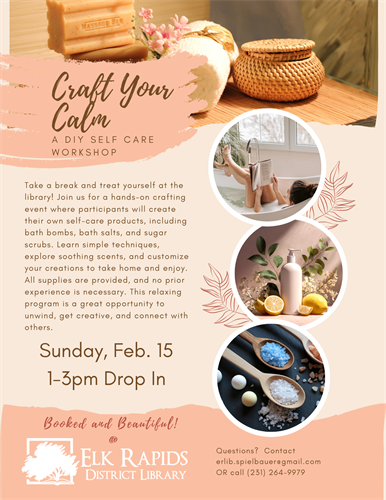 Take a break and treat yourself at the library! Join us for a hands-on crafting event where participants will create their own self-care products, including bath bombs, bath salts, and sugar scrubs. Learn simple techniques, explore soothing scents, and customize your creations to take home and enjoy. All supplies are provided, and no prior experience is necessary. This relaxing program is a great opportunity to unwind, get creative, and connect with others.