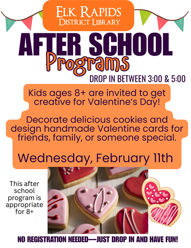 Kids ages 8+ are invited to get creative for Valentine’s Day! Decorate delicious cookies and design handmade Valentine cards for friends, family, or someone special.