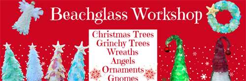 Get crafty and coastal this holiday season! Join us for a night of creativity, sparkle, and beachy vibes as you turn tumbled glass into festive masterpieces. Choose your project — from a classic tree (complete with starfish topper!) to a Grinchy tree, wreath, angel, or a 3-pack of ornaments.