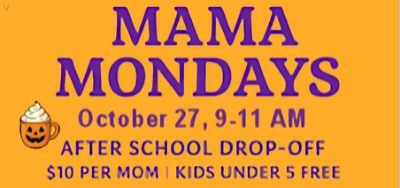 $10 per mom, includes tea or coffee, finger food snacks. Relax, connect and enjoy. Wear or bring your Halloween vibe.