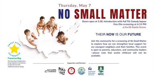 Join community members at the Elk Rapids Cinema on Thursday, May 7 for a special screening of the documentary No Small Matter. This event explores the impact of early childhood education and discusses ways to strengthen local support for the youngest neighbors and their families.