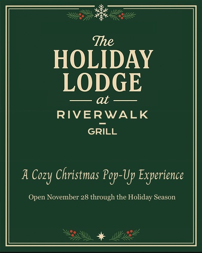 Riverwalk Grill is extending its season this year with The Holiday Lodge, a celebration of the holidays through dazzling décor, themed cocktails, and the same full-service dining experience guests have come to love.